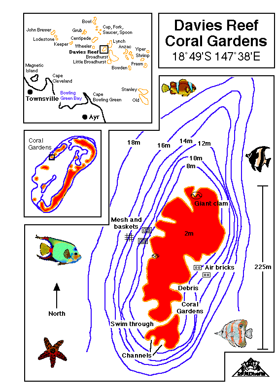 These lead out southwards from the gardens. The turtle may be seen sleeping under a large soft coral in the more southerly channel.