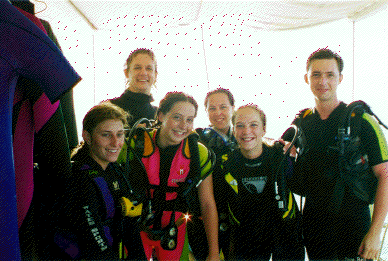 | Successful Advanced Open Water class: Kristi, Jana, Laura, Kelly, and Henrik, with Geoff standing behind. | |