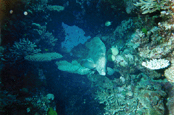 | One of the swim-throughs at Helix Reef, with a Baramundi cod